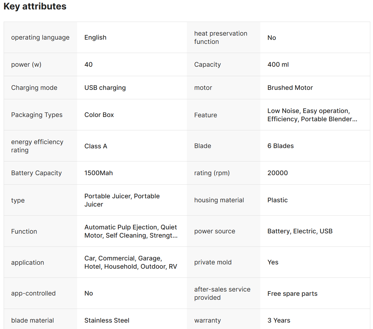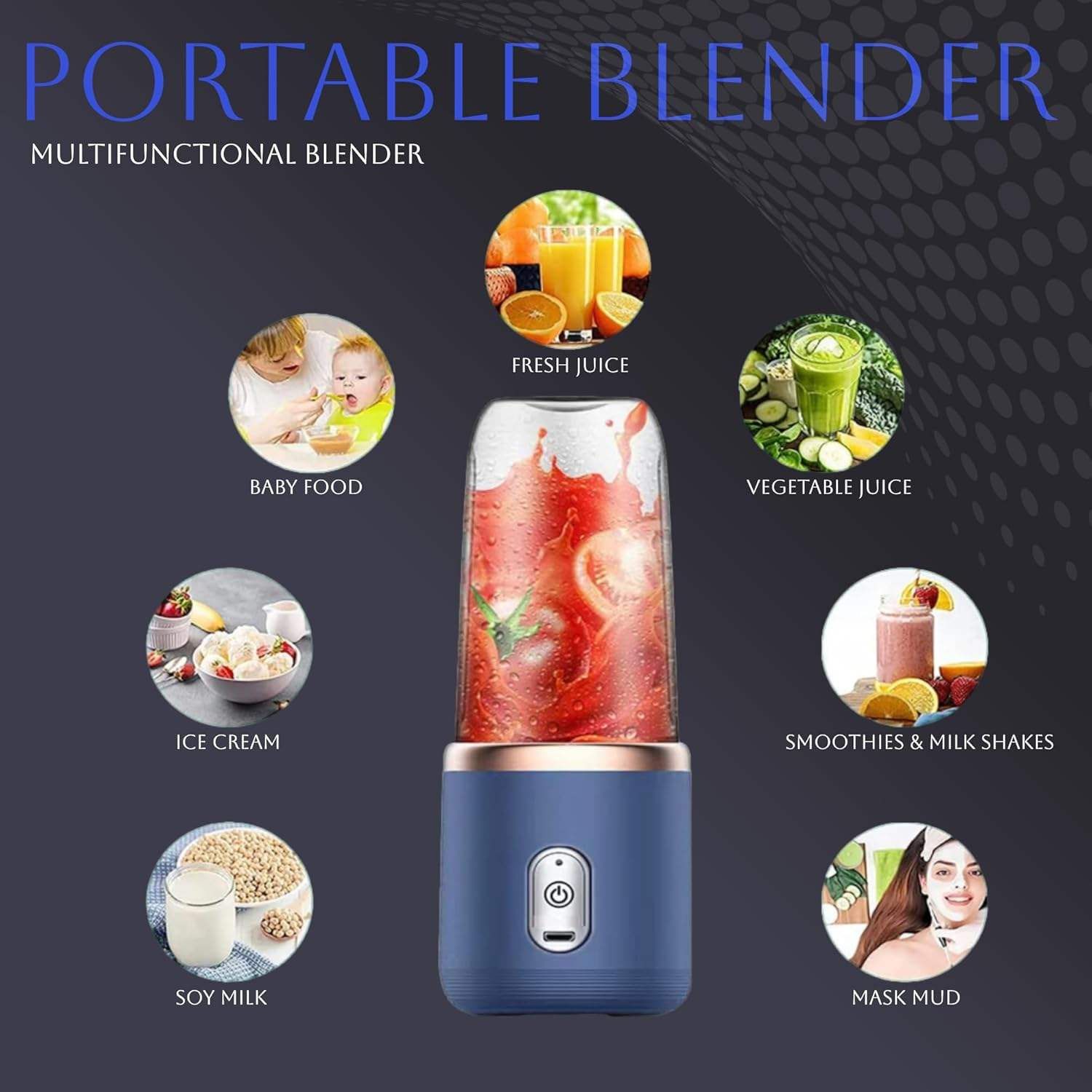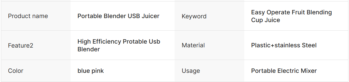 High Quality Portable Mini Fruit Blender Custom Travel Cup with USB Power Source Electric Juicer Mixer for Outdoor & RV Use